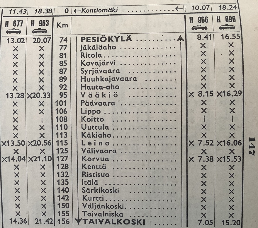 asemaa, pysäkkiä tai seisaketta. Varsinkin Pesiökylän ja