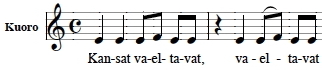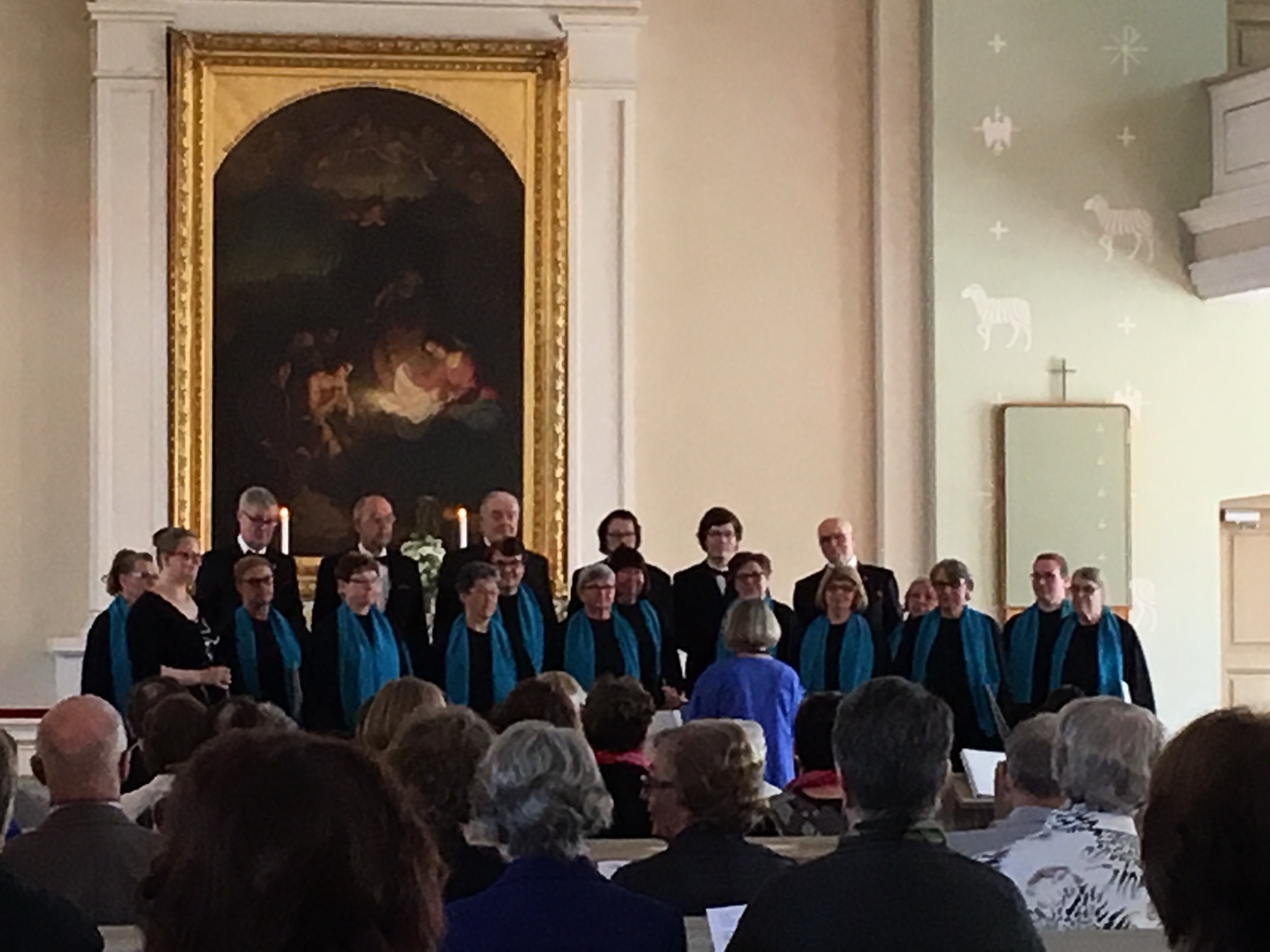 samalla tavoin rauhallisesti hengittäen kuin kuoro; itse asiassa