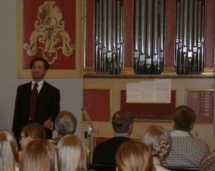 Sibelius-Akatemian kirkkomusiikin osasto on avannut Suomen historiallisten urkujen nettisivuston osoitteessa http://www2.siba.fi/shu Sivujen julkistamista juhlittiin Sibelius-Akatemian urkusaliin hankittujen italialaisten urkujen käyttöönoton yhteydessä. Vihkiäiskonsertin soitti prof. Francesco Di Lernia (kuvassa), joka piti myös kahden päivän kurssin italialaisen urkumusiikin tulkinnasta. |