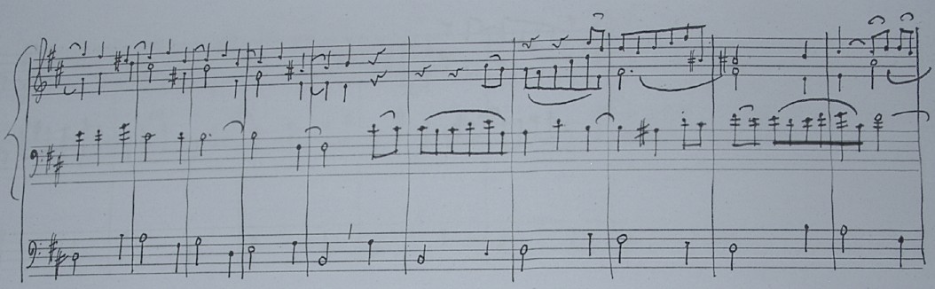 Passacaglian luonnokset on kirjoitettu tiiviisti kolmelle