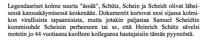Scheidtin teosten suomenkielisiin esitysmahdollisuuksiin.