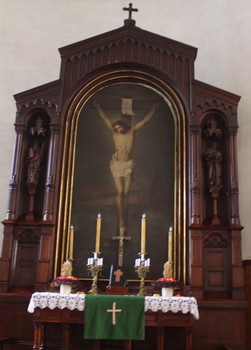 Kirkko on yksilaivainen mutta korkea, ihanteellinen myös urkusoinnin kannalta. Alttariseinässä odottaa yllätys: sen maalaus on käännettävissä. J.W. Hagen-Schwarztin Kristus ristillä voidaan vaihtaa pääsiäisaamun messuun W.F. Krügerin maalaukseen Naiset haudalla.